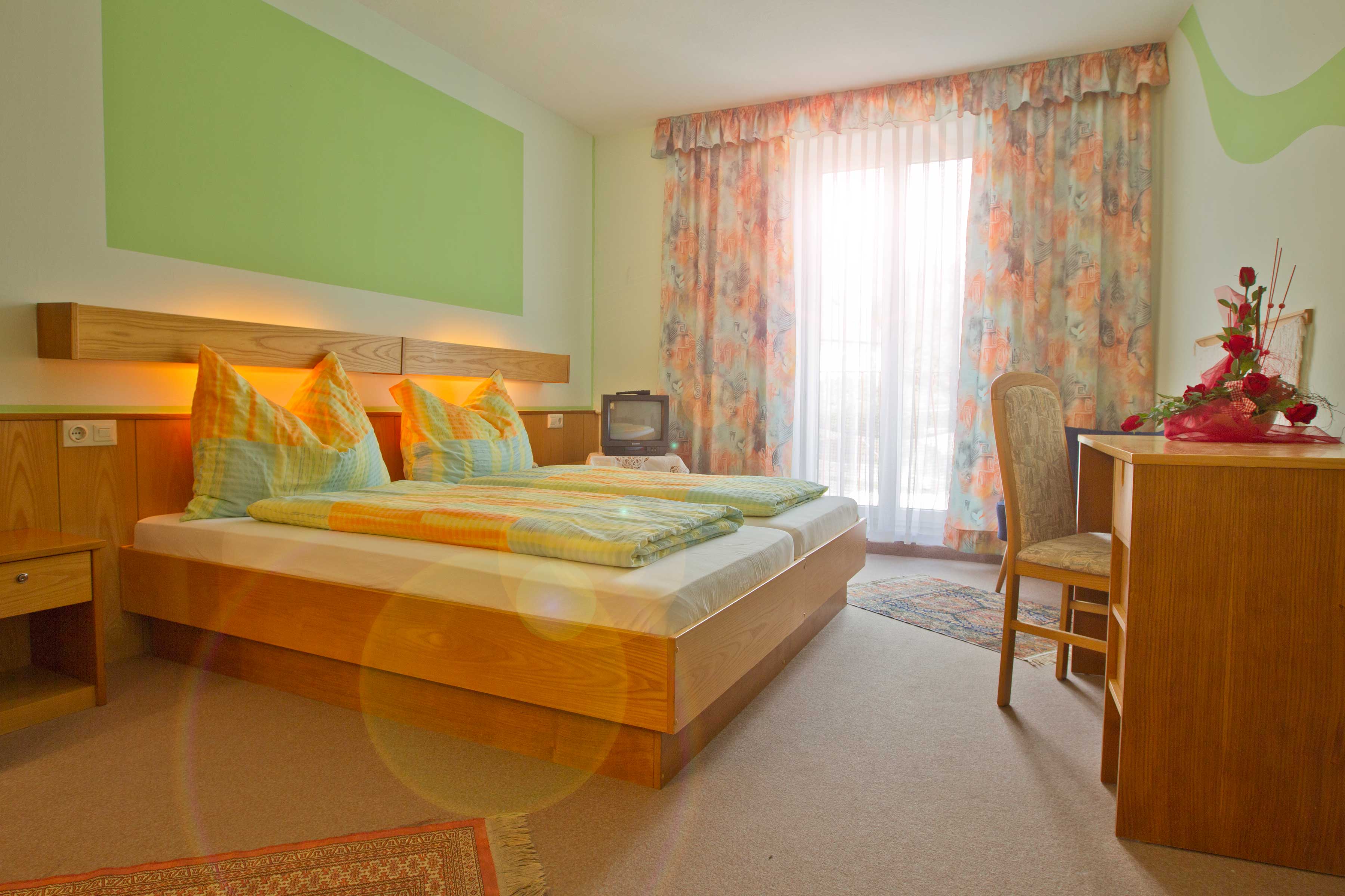 4 Doppelzimmer mit WC, Dusche, TV, Föhn 1 Einzelzimmer mit WC, Dusche, TV, Föhn 1 Appartment mit 2 Schlafzimmer, Küche, Essecke, Dusche, WC, Föhn, TV; Verleih von Rucksacken und Wanderstöcken, Benützung von Waschmaschiene ( gegen Gebühr), Trockenraum, Parkplatz im Hof